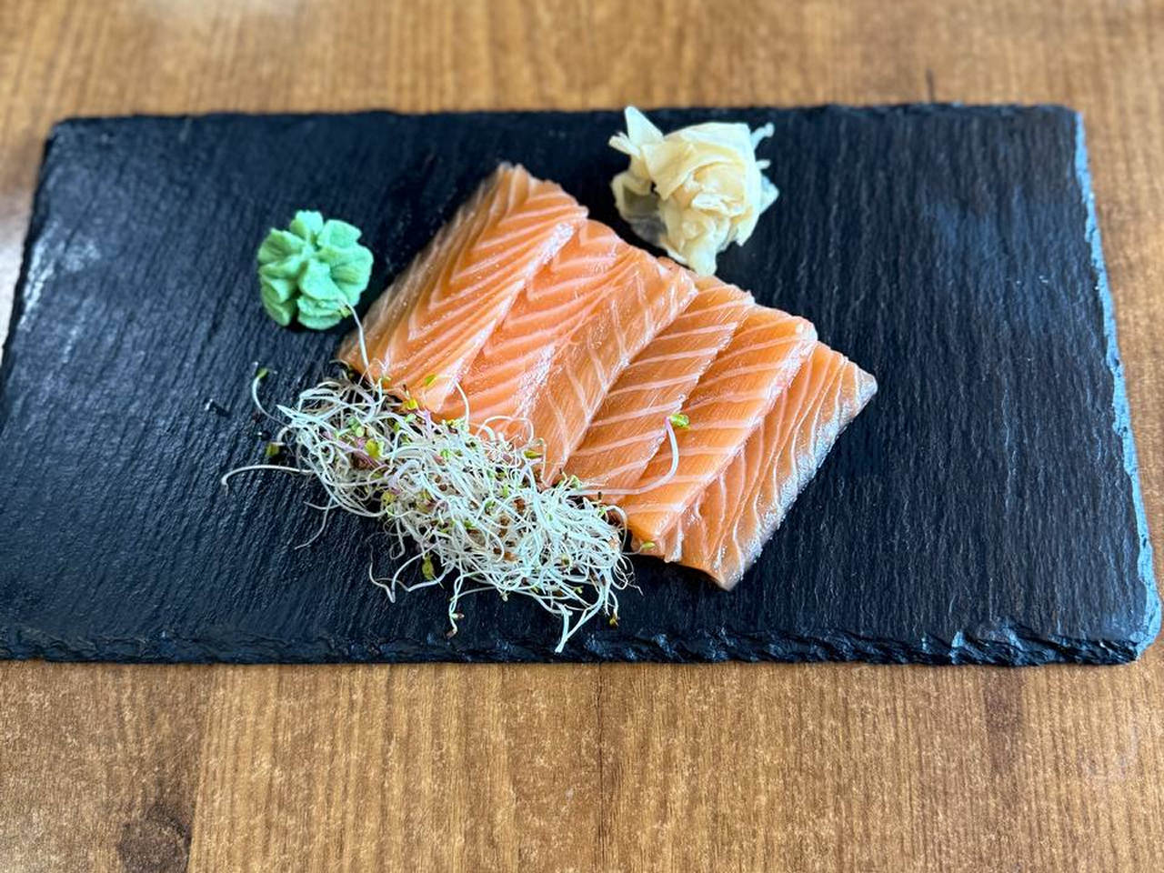 12x futomaki łosoś pieczony(łosoś pieczony,majonez,ogórek,kanpyo,oshinko,sałata)