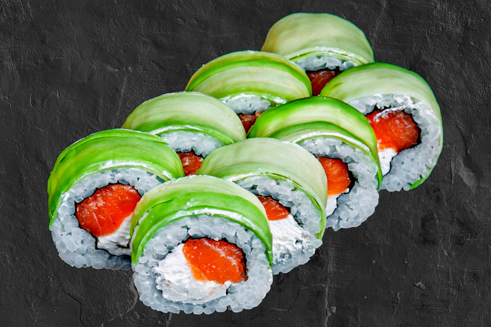 6x futomaki łosoś surowy (łosoś surowy, serek Philadelphia, ogórek, awokado)