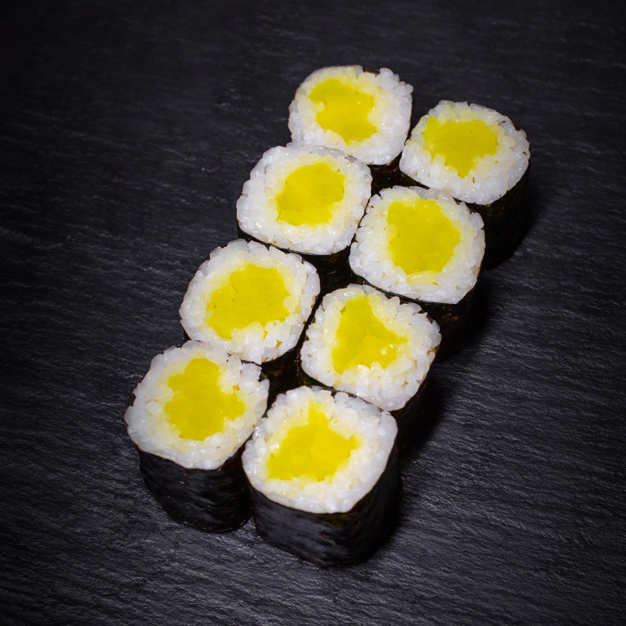 6x futomaki maślana w tempurze (maślana w tempurze, ogórek, oshinko, kanpyo, majonez)